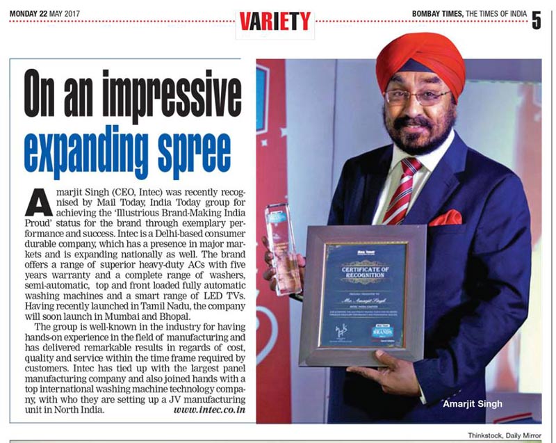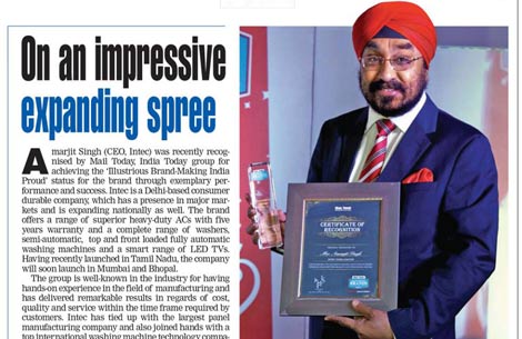 Intec India Limited Got the Illustration Brand award from India Today, Mail Today last week in Delhi.